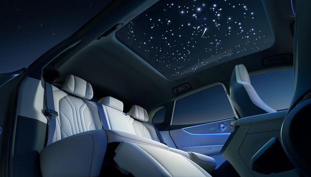 而车内真正的亮点还在于其独特的豪华配置:浩瀚星空顶由500颗独立星粒嵌入天幕制成,厚度仅增加1mm,兼具防晒和能量隔离功能,让车内既清凉又私密;海豚音剧院级音响系统功率高达4680W,配备29个高保真扬声器,支持杜比全景声,均配8个头枕音响和8个座椅振子,为乘客带来沉浸式的影音体验;后排的“伊姆斯躺椅”更是将极氪009上备受好评的设计搬移至此,一键开启后能让乘坐者的身体得到更大程度的舒展,长途旅行也能轻松惬意,久坐不累。