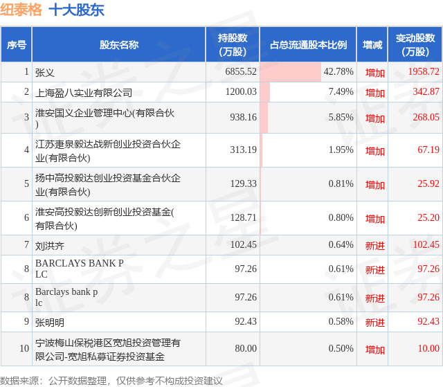 根据纽泰格2025年中报公布的十大股东详情如下: